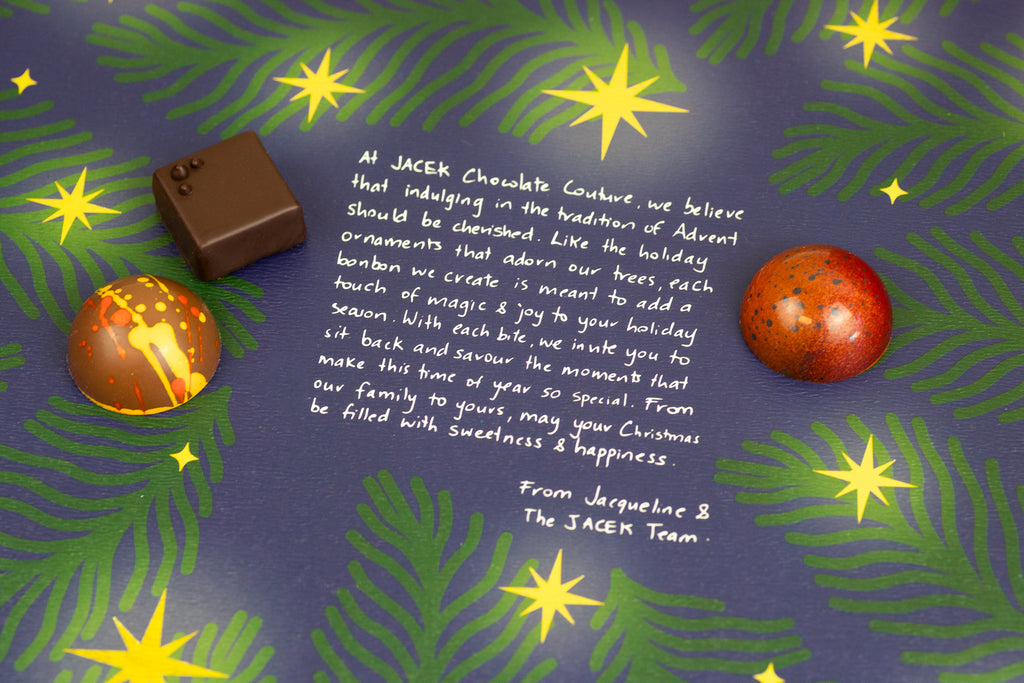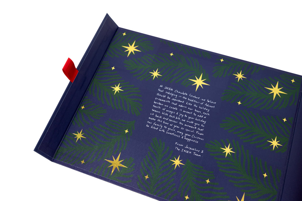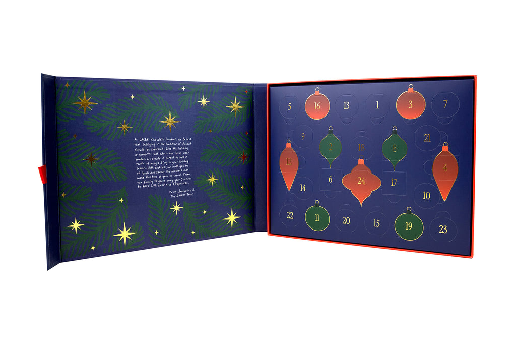 This year’s Advent Calendar features 24 flavours crafted to perfection. The collection is packaged in a luxurious box featuring a magnetic closure & gold foil elements to create the most exquisite countdown to Christmas.